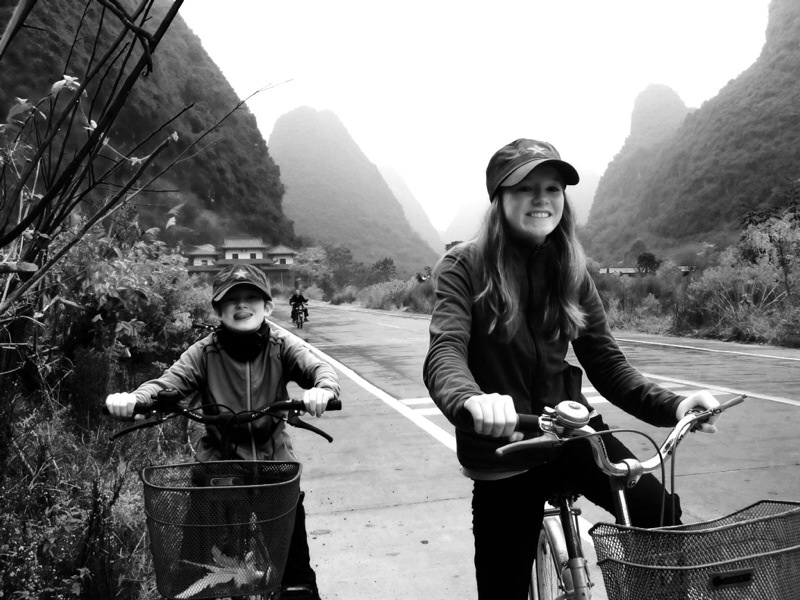Vi sov lenge i dag. Frokosten klokka ni rakk vi ikke, vi tuslet ned klokka tolv, og hadde da medbrakt mat til frokost. Fikk likevel stekt egg. Så dro vi på sykkeltur. Det var overskyet, og ca 18 grader tipper jeg. Vi syklet i verdens vakreste landskap. Flatt og fint å sykle ut på landet, omkranset av de karakteristiske fjellene. Vi passerte mye rart, åkrer, palmer, mandarintrær, gamle damer som solgte blomsterkranser, og gamle damer bærende på store kurver fylt med trevirke, og mye rart på både to og fire hjul passerte oss. Utrolig hvordan mopedene er innrettet for å få plass til barn, hund, og bestemor, samt sjåfør. Etter en stund begynte det å regne, og vi stoppet ved en liten kafe drevet av mor og sønn. Vi forstyrret tydeligvis midt i et spennende TV-program , en slags kinesisk, sci-fi ninja actionfilm. De var ikke glad for besøk, og vi fikk til nød noe som lignet Cola og appelsinjuice. Lyden på TV’en var på full guffe, så mistenker at en eller begge to var tunghørte. Vi drakk nå vår liksom-cola og juice, og dro videre straks det lettet, uten at de to foran TV’en viste tegn på at de registrerte vår sorti. Det har forresten slått meg at det er få barn å se, noe jeg fikk bekreftet av husverten vår Sam. Kina har lenge praktisert ettbarns-politikk for å ha kontroll med befolkningsveksten. Problemet er nå at det blir født for få barn. Foreldrene blir ivaretatt av barna når de blir gamle. Her finnes ikke pensjonsordninger som i Norge, og det er derfor en stor belastning for det eneste barnet å sørge for sine gamle foreldre når de ikke lenger er i stand til å tjene penger sjøl. Frykten for befolkningsnedgang, og en økende andel eldre har ført til at det nå er lov å få to barn. Men mange velger å la det være.