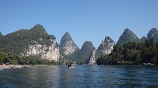 Vi fikk en fantastisk tur oppover Li-elva som er det mest gjengitte naturfenomet i malerier og fotografier fra Kina. På 20 yuan-seddelen er motiv fra Li-elva gjengitt på baksiden. Et gammelt ordtak sier at stedet har det fineste landskapet under himmelen, med sin klare elv, grønne bambus, og tårn av kalkstein.