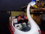 Vi gikk langs vannkanten helt til vi kom til et sted der de leide ut svane-sykkelbåter. Vi leide oss en båt for en time for 80000 penger!!!! Sinnsykt dyrt… Den var litt vanskelig å styre så jeg var heller bare motor. Etter en halv time på vannet måtte Isak bæsje, så vi måtte til land igjen:( Vi ventet utenfor båtutleiet på Isak som var på do. Det var blitt ganske mørkt. Da Isak var ferdig tenkte vi å finne en minibank og få spist noe på vei hjem. Flere og flere flaggermus flakset fort forbi og rundt oss og fanget de forbannede djevelmyggene som hadde fulgt oss i hele dag. Jeg elsker flaggermus!!!!! Jeg og Isak så to rotter på vei til minibanken som var ved MAXX Café, der mamma fikk tatt ut 2 millioner penger!!!!! Vi er millionærer!!!!! Vi spiste på et lite gatekjøkken nær der vi bodde. Vi bestilte stekte nudler med biff til oss tre for 150000 penger!!!! Det var dyrt, men steike så godt det var!!!! Vi fant veien hjem til der vi bodde og gikk opp på rommet vårt. Jeg og Isak måtte gjøre lekser en time:( men det var greit… Og nu e æ ferdig med å skrive.