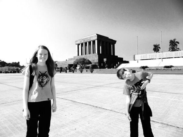 Det var klart for en dag med sightseeing i Hanoi, og vi startet tidlig. Allerede før vi hadde gnidd søvnene ut av øyan var guiden på døra for å hente oss. Det bar avgårde til Ho Chi Minh mausoleet først. Selv tidlig søndags morgen var trafikken hardnet til, det så ut som alle de to millionene motorsykler og mopedene i Hanoi var på farta. Ved mausoleet var det allerede lange køer, vi stilte oss i rad og rekke og ble etterhvert strippet for kamerautstyr og telefoner, i tillegg til at vi måtte gjennom en sikkerhetskontroll, som ble nøye overvåket av strenge vakter. Da vi nærmet oss inngangen til mausoleet kom det til stadighet soldater i hvite uniformer masjerende. Vi måtte holde rekke, to og to på hver rad. Vel inne i mausoleet, skulle vi ikke prate, og vi måtte ikke stoppe opp. Da vi kom opp en trapp, og rundet et hjørne, kom vi inn i et rom med dempet belysning og en sarkofag. Inni lå Ho Chi Minh, tilsynelatende fredfullt, utrykket «død mann på boks» kom meg i hu. Vi passerte ærbødig, overvåket av syv soldater som så strengt på oss. Her var ikke tid og sted for Isaks ablegøyer…