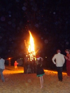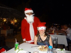Så ble det underholdning, gaver ble utloddet, et stort bål på stranda ble tent, og jammen kom ikke julenissen også. Han minnet i fasongen mye om kokken vår, og snakket akkurat like dårlig engelsk, men du verden så artig med julenisse på besøk. Lenge siden sist. Isak og Kaisa fikk en nisselue i presang. Og så kom kveldens høydepunkt, levende musikk. Et band var hyret inn for å få oss i skikkelig julestemning med den ene amerikanske juleslageren etter den andre; «Jingle bell», «Mary’s boy child», og andre klassiske julesanger fikk gjennomgå. For ikke å snakke om gjestene som også fikk gjennomgå. Jeg sier ikke mer. Det skulle mer til for å ødelegge en hyggelig kveld….