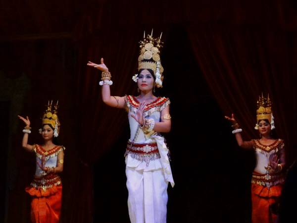 I dag dro vi på Apsara Theatre nettopp for å oppleve mer kambodsjansk dans. Det var en forestilling som presenterte apsarisk ballett, og mer tradisjonelle danser som forteller historier fra landsbygda eller om kampen mellom guder og demoner. Danserne bruker hendene i ulike posisjoner til å symbolisere ulike koder, som blomster, frukt og annet. Musikere spilte på tradisjonelle instrumenter som Samphor og sralai, mens de sang. Hele 40 dansere, sangere og musikere var i aksjon, og det var en fantastisk forestilling.