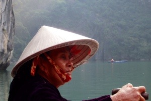 Da Isak og jeg var på teplukking i Yangshuo sør i Kina, fikk vi på oss en flettet rund hatt. Den var fin og forseggjort. Da vi kom til Vietnam så vi samme typen hatt, men i enklere utgave, laget av palmeblader, men ikke flettet. Den ble brukt av bønder ute på åkrene og rismarkene, og folk som var i arbeid i landsbyene og byene. I byene var det særlig gateselgere som gikk med et åk over skuldrene som hadde på seg hatten. Sør på øya Phu Quoc brukte kvinnene som trålet strendene og solgte frukt, eller tilbød massasje slike hatter. Noen steder så vi dekorerte hatter med fine tegninger på eller med skrift på, gjerne et poetisk utsagn.