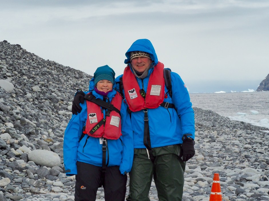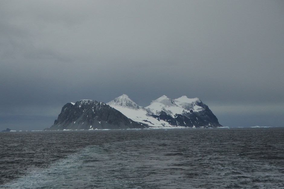 Jenny Island, hvor mange har gått i land her tro? Ikke mange! Denne sesongen er det første gang Hurtigruten har hatt landstigning så langt syd. Vi ser litt drivis her og der, og et og annet isfjell, og det er godt nytt for oss. Det samme kan ikke sies om vindforholdene. Det blåser friskt, og vi får beskjed om at det kan bli landstigning uten trapp fra lettbåtene når vi skal i land, så vi må være noenlunde spreke for å komme oss i land her.