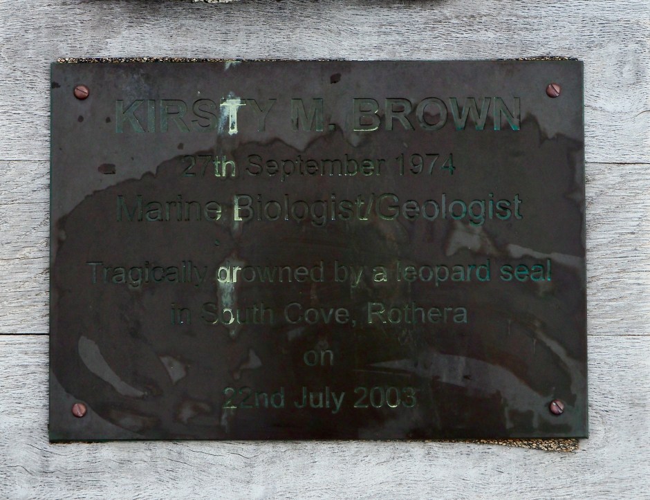 På haugen til høyre for stasjonen var det plassert antenner og der sto også et ensomt kors, til minne om de BAS-ansatte som har omkommet i Antarktis. Det var flere minneplater med navn og datoer. En som gjorde inntrykk var minneplaten over Kirsty M. Brown, som i 2003 ble drept av en leopardsel da hun var ute og dykket farvannene her. Noe som førte til strenge sikkerhetstiltak i etterkant. Det er tydeligvis ikke helt risikofritt å jobbe i Antarktis.